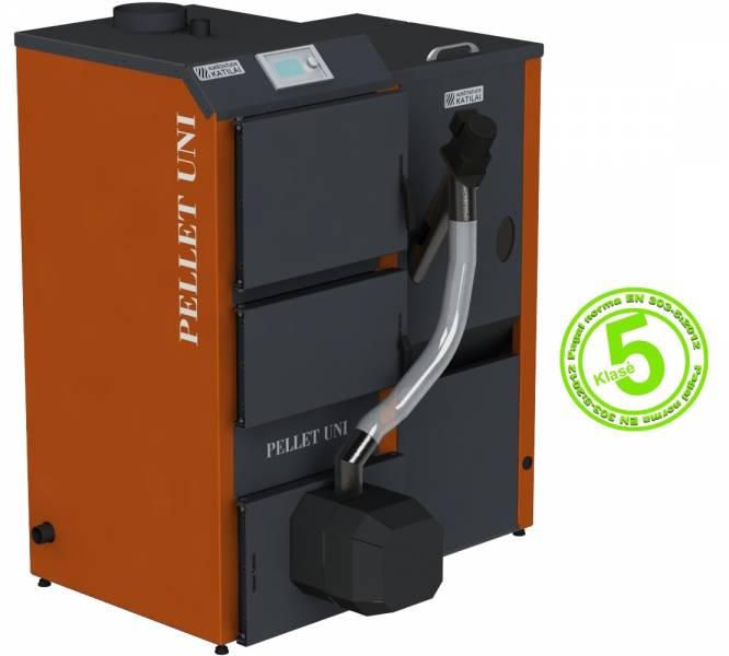 „PELLET UNI" katilas - aukščiausios kategorijos ir techninio lygio gaminys turintis keturis horizontalius šilumokaičius ir labai didelį šilumokaičio plotą. Nerūdijančio plieno deflektorius ir ketaus ardeliai skatina degimo procesą. Visa tai leidžia pasiekti katilo naudingumo koeficientą daugiau nei 90%.